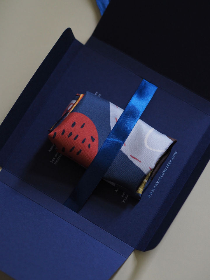 Anna primarily seeks inspiration in nature, her surroundings, travels, and books. She enjoys working with symbols and their meanings to enhance abstract compositions. However, the most crucial element in Anna's scarf designs is color.